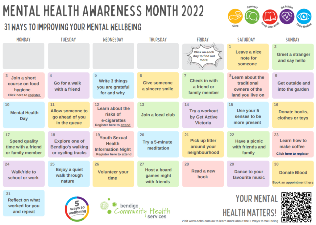 BENDIGO Community Health Services is encouraging people to use Mental Health Month as a reminder to be kind to themselves and others.